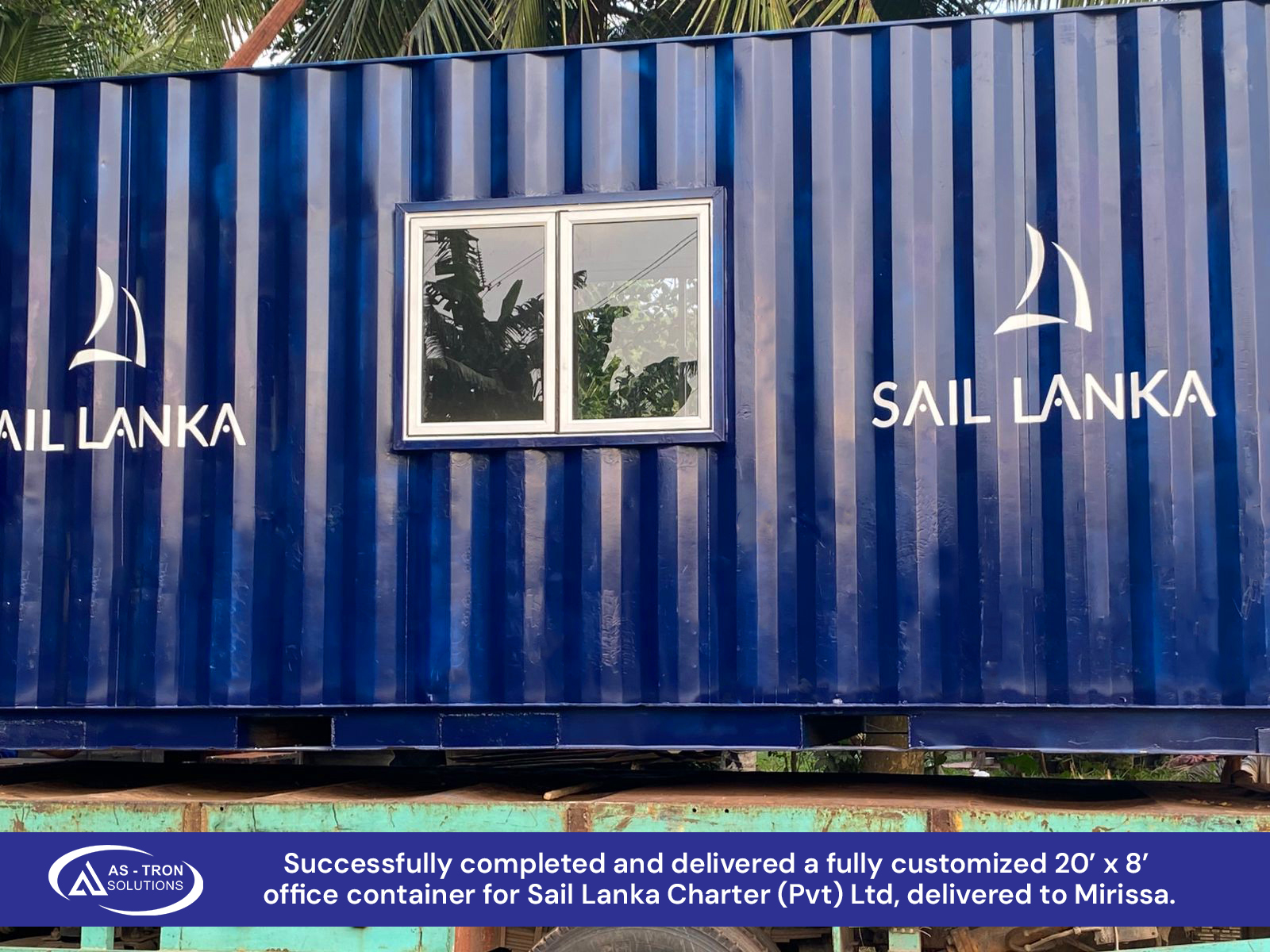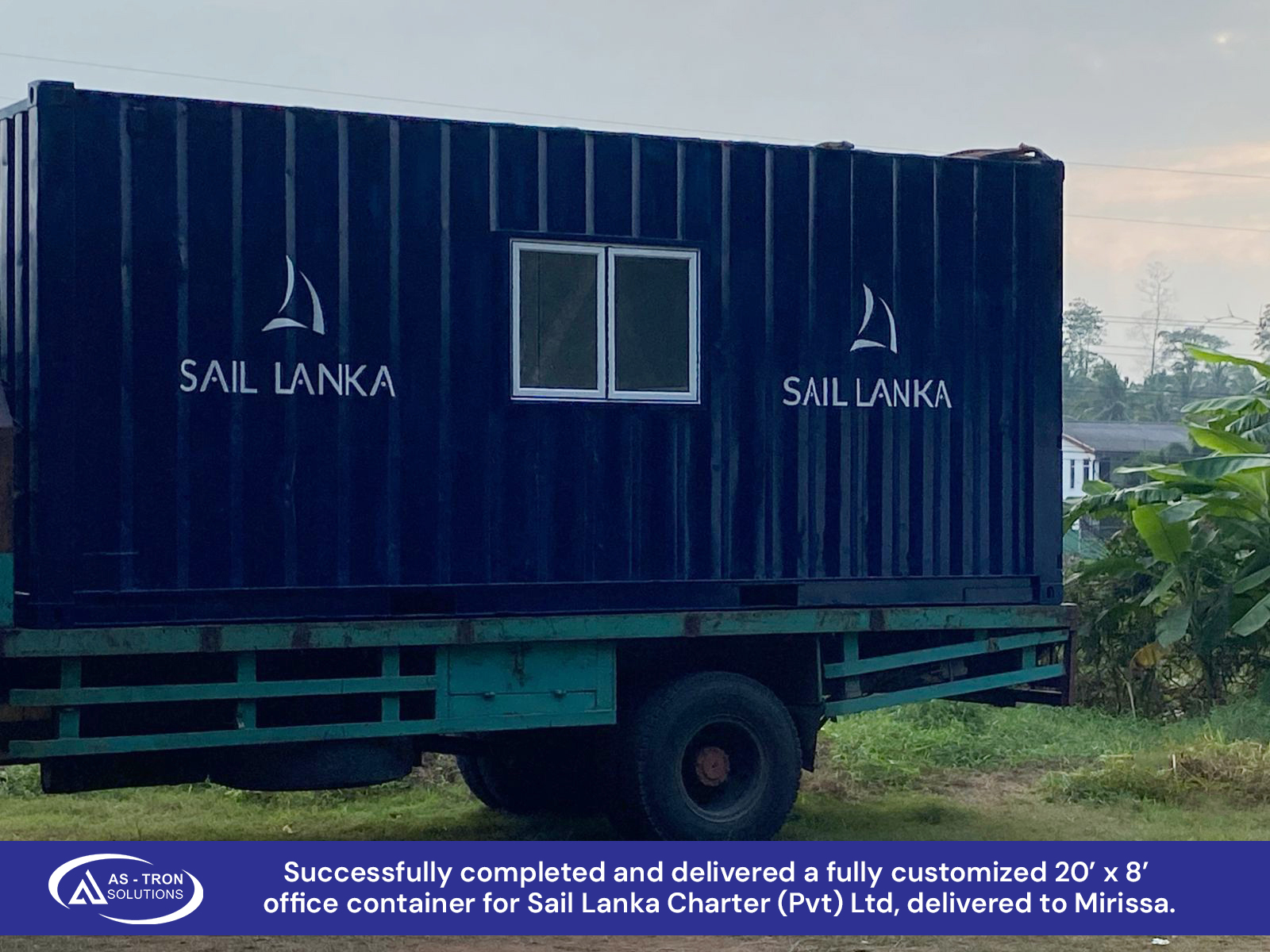 Successful Fabricate & delivery of a fully customized 20’ x 8’ office container for Sail Lanka Charter (Pvt) Ltd, designed to provide a functional, comfortable, and professional workspace.